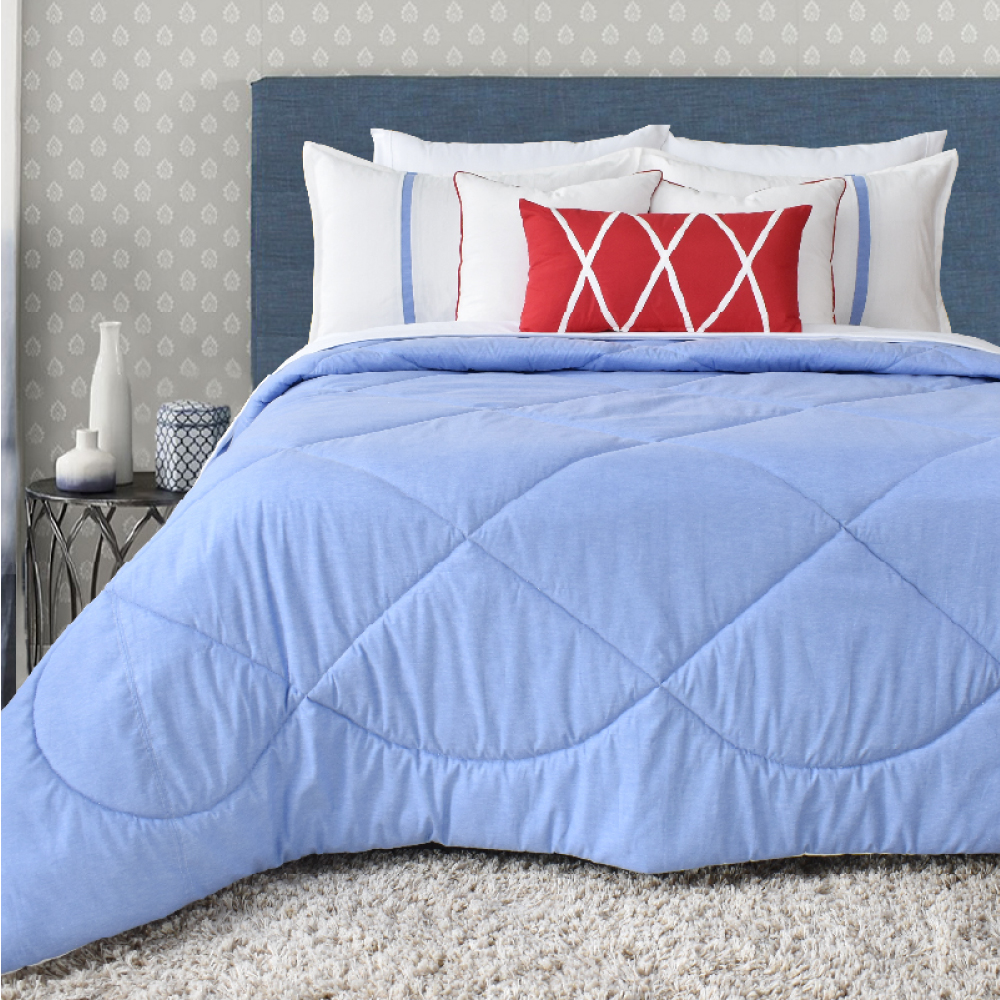 1 COBERTOR + 2 FUNDAS DE ALMOHADA + 3 COJINES DECORATIVOS